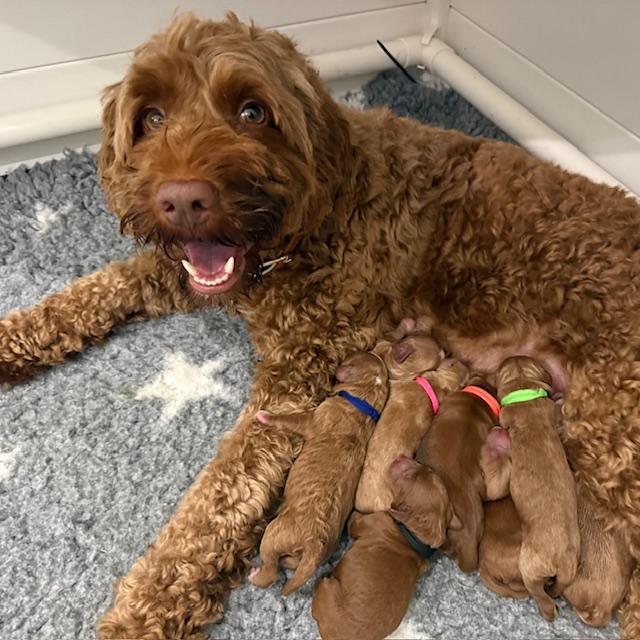 10 medium to larger medium size pups (16-18kgs) as adults, in shades of caramel, chocolate and parti with non-shedding fleece coats. Send home date 22nd of January 2026.