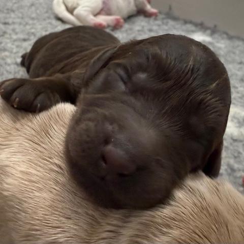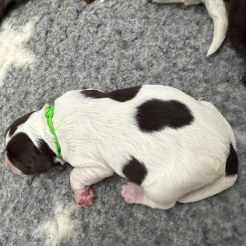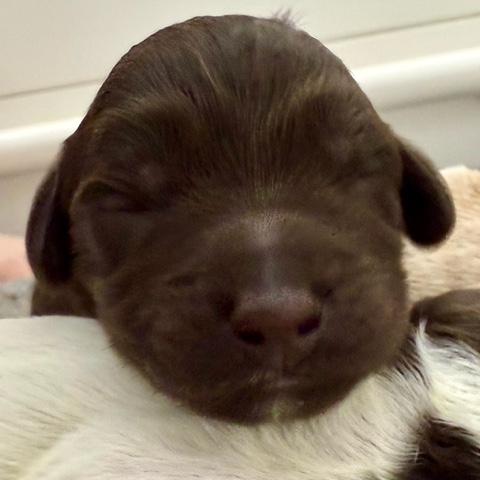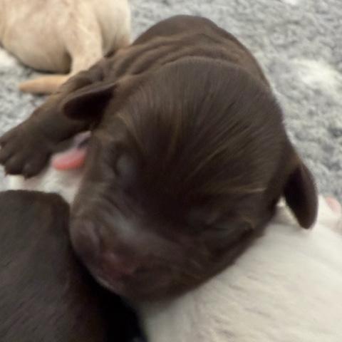 | Puppy #5 Green Collar Chocolate parti Boy | ![]() | ![]() | ||