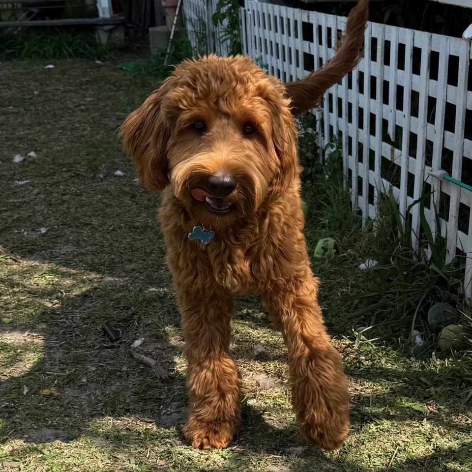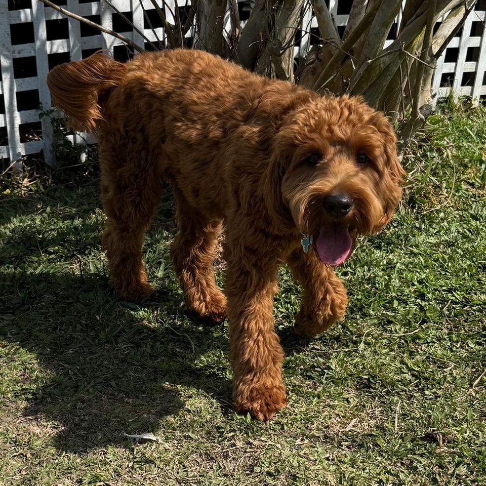 ALA Rego # 0185-018-08D.O.B: 04-01-25Generation: ALF2Colour: RedDNA Colour: Bbee; S/S KK at/aCoat: FleeceSize: Medium 16kgsHips AVA (Dr Lavelle):3+4=7pennHip: R 0.33 L 0.33Elbows: 0+0Orivet DNA profile: Completed